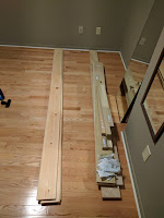 The other, greenish-looking wood is for a bed frame for the guest room. The hardware is sitting on the end. I've got the legs marked for mortises, it should only take a few hours of work to cut them and then glue up the footboard and headboard.