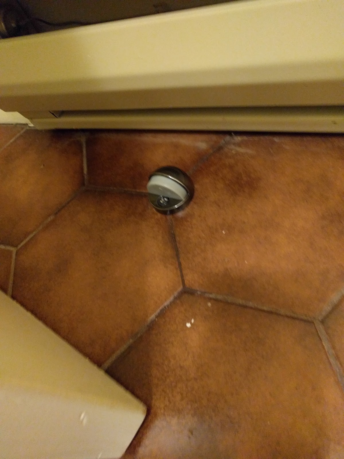 None of the doors in the house have doorstops, so I've been installing various sorts of bumpers and things to save the walls and mouldings.
